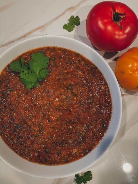 4. Lastly add the rest of 1/2 a can of tomatoes and salt to taste. Blend the hell out of it!